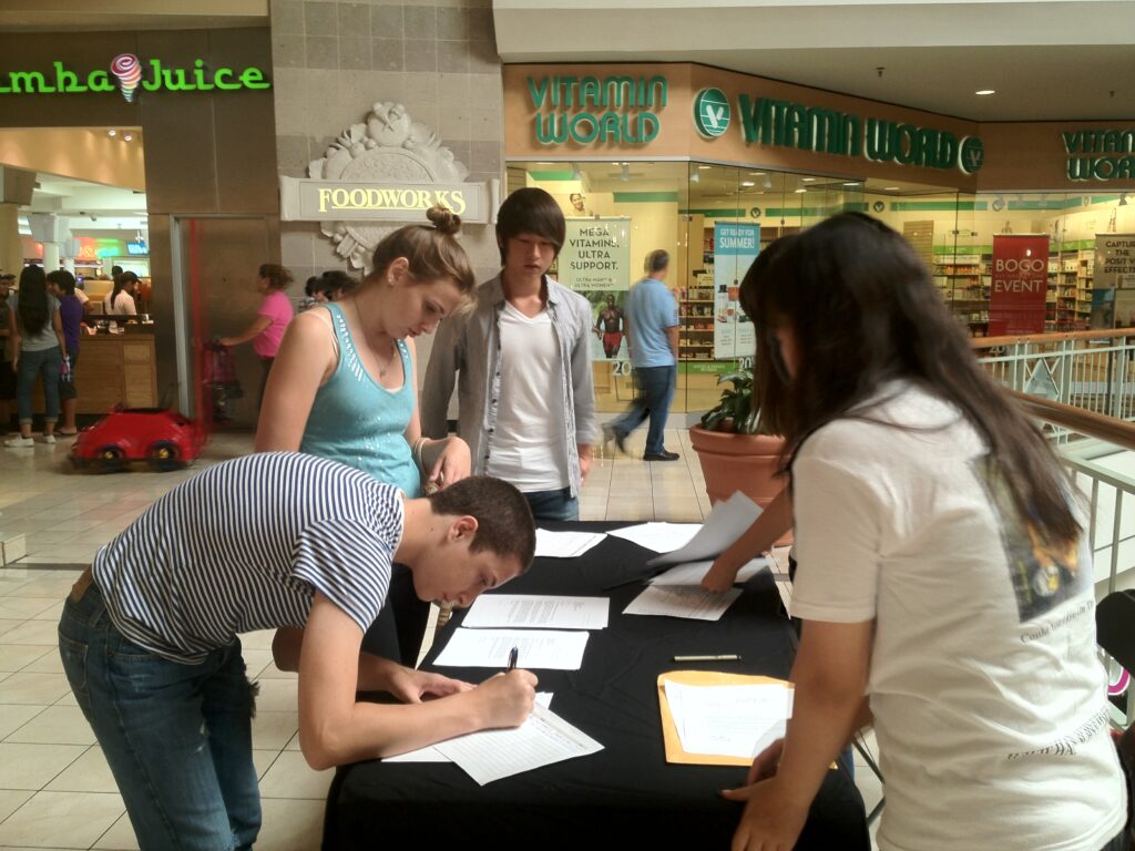 From 2010 to 2012 our members organized groups of some three hundred students to write thousands of letters to their state and district legislatures asking them to pass the House Resolution Bill to allow American adoption of North Korean orphans. Our members organized petition signing events to collect over 30,000 petition signatures in front of markets, in shopping malls, and in local churches. They also made public presentations in front of audiences to let them know why this bill was important. All their efforts proved fruitful when the bill was passed in 2012. For most of our youth members, this was the first time they had ever spoken in public to influence adults, not to mention taking on a project that effected a real change in the society.