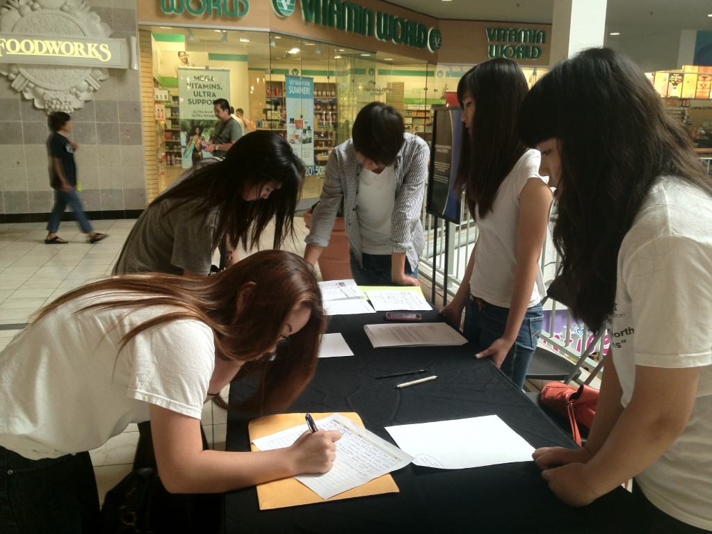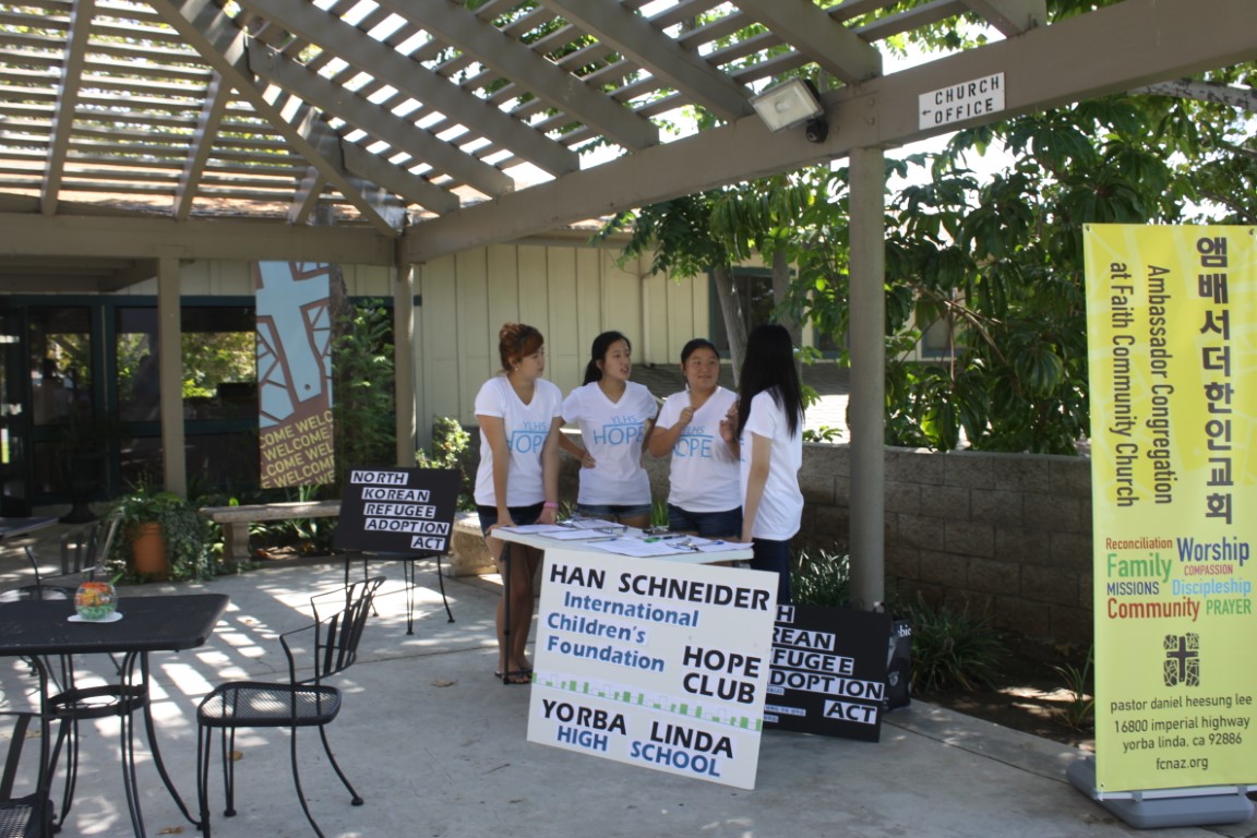 From 2010 to 2012 our members organized groups of some three hundred students to write thousands of letters to their state and district legislatures asking them to pass the House Resolution Bill to allow American adoption of North Korean orphans. Our members organized petition signing events to collect over 30,000 petition signatures in front of markets, in shopping malls, and in local churches. They also made public presentations in front of audiences to let them know why this bill was important. All their efforts proved fruitful when the bill was passed in 2012. For most of our youth members, this was the first time they had ever spoken in public to influence adults, not to mention taking on a project that effected a real change in the society.
